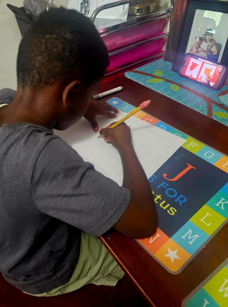So instead, I offered him a video tutorial. He was still hesitant, but slowly he started to follow along—line by line, shape by shape. And as the cat began to take form, his whole energy shifted. Sadness turned into curiosity, curiosity into pride.
